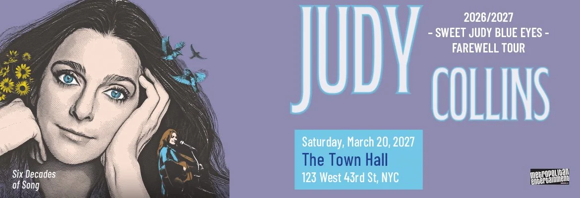New York, NY — Award-winning singer-songwriter Judy Collins will bring her Sweet Judy Blue Eyes: Farewell to New York’s Town Hall on Saturday, March 20, 2027 at 8:00PM. Collins has long inspired audiences with sublime vocals, boldly vulnerable songwriting, personal life triumphs, and a firm commitment to social activism. In the 1960s, she evoked both the idealism and steely determination of a generation united against social and environmental injustices. Six decades later, her luminescent presence shines brightly as new generations bask in the glow of her iconic 55-album body of work, and heed inspiration from her spiritual discipline to thrive in the music industry for half a century. Tickets are $250; $95; $75; and $55.00 (plus applicable fees) and will be available at www.ticketmaster.com starting on Friday, March 20 at 10 am EST.