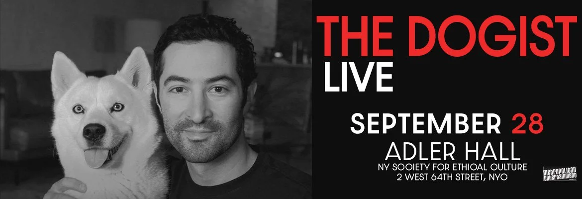 New York, NY — Instant International Bestselling Author, Dog Photographer, Producer, and creator of the online sensation, The Dogist, Elias Weiss Friedman will bring his one-man show to Adler Hall at New York Society for Ethical Culture on Sunday, September 18 at 4:00PM. In this funny, moving show, Friedman takes us on a journey through what he's learned from the thousands of dogs he's met, the people who love them, and what we can learn about ourselves through our relationship with dogs. Tickets are $40, $50, and $60 (plus applicable fees) and available at www.eventbrite.com starting on Friday, August 22 at 10:00AM.